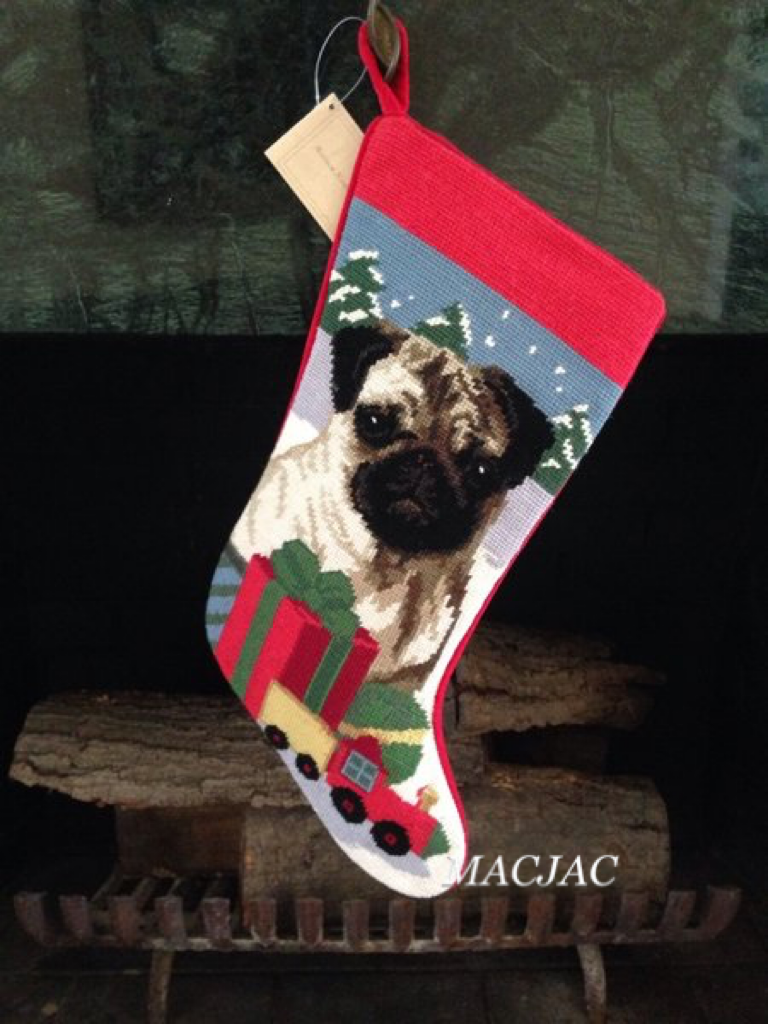 Fawn Pug Dog Needlepoint Christmas Stocking