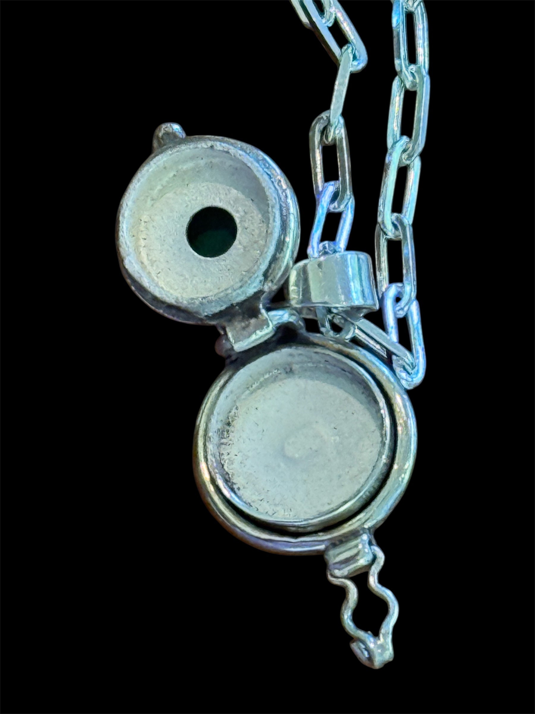 Sterling Silver Malachite Poison Pendant with 16" Paperclip Chain