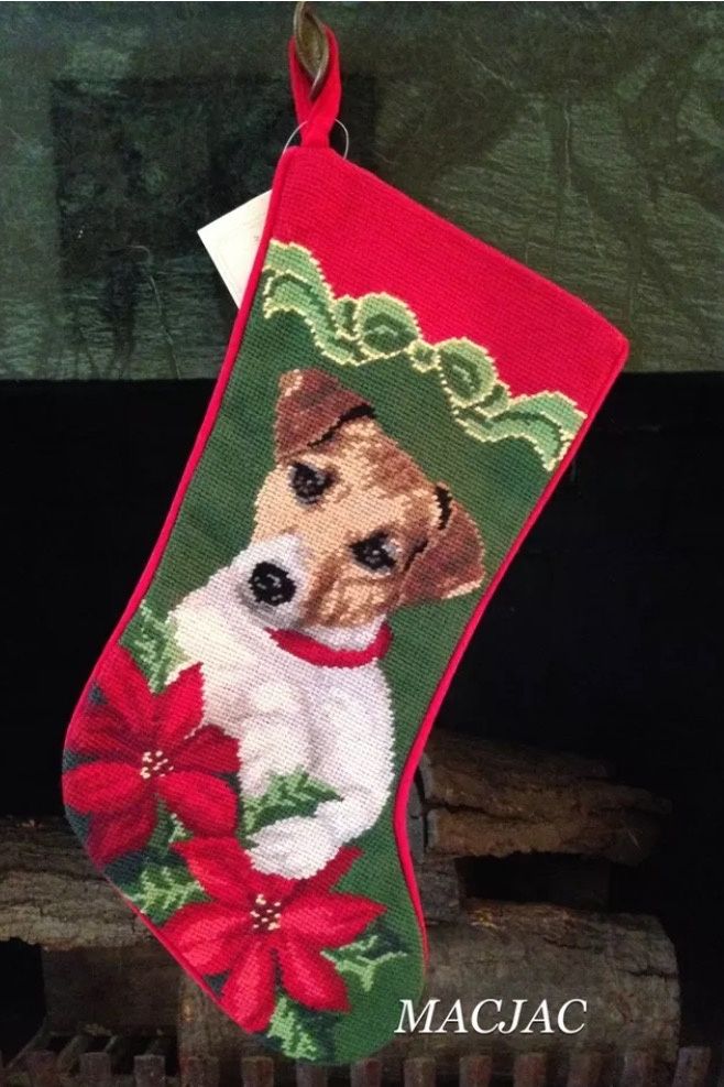 Jack Russell Terrier Dog Needlepoint Christmas Stocking