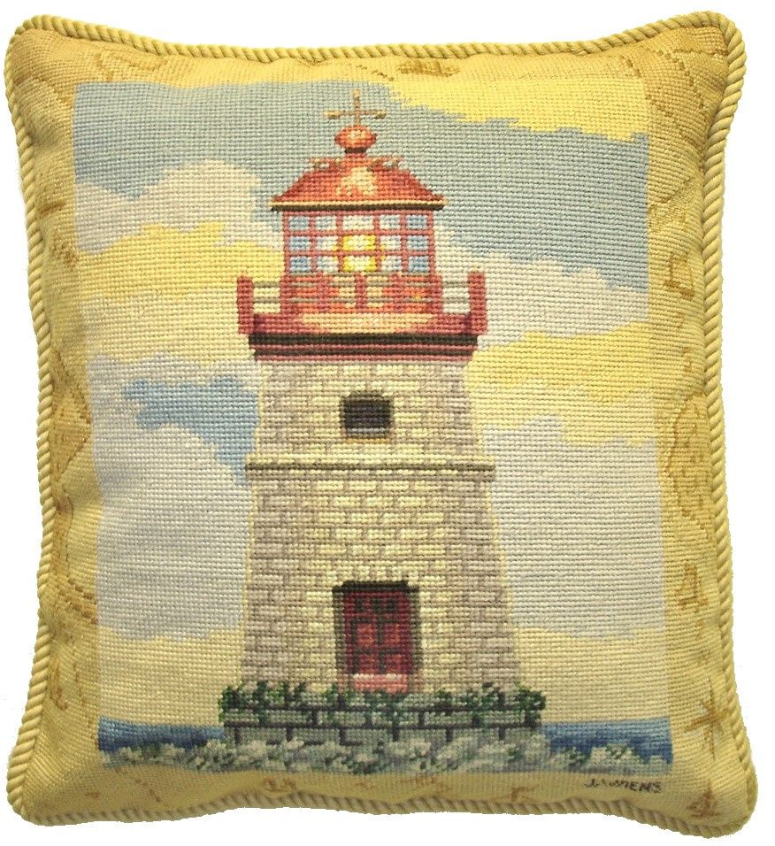 Needlepoint Mapped Lighthouse James Wien 18"x16" Pillow
