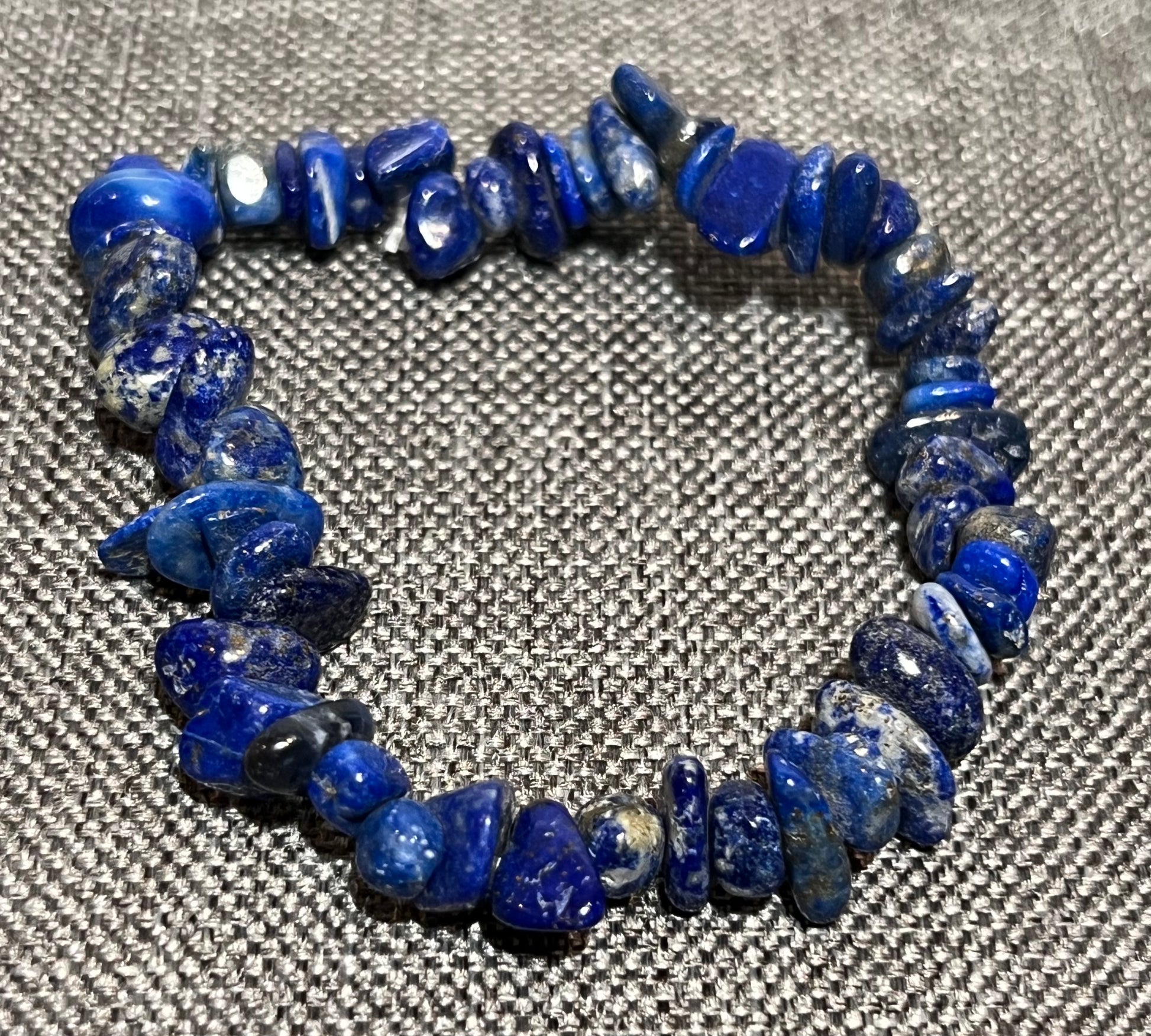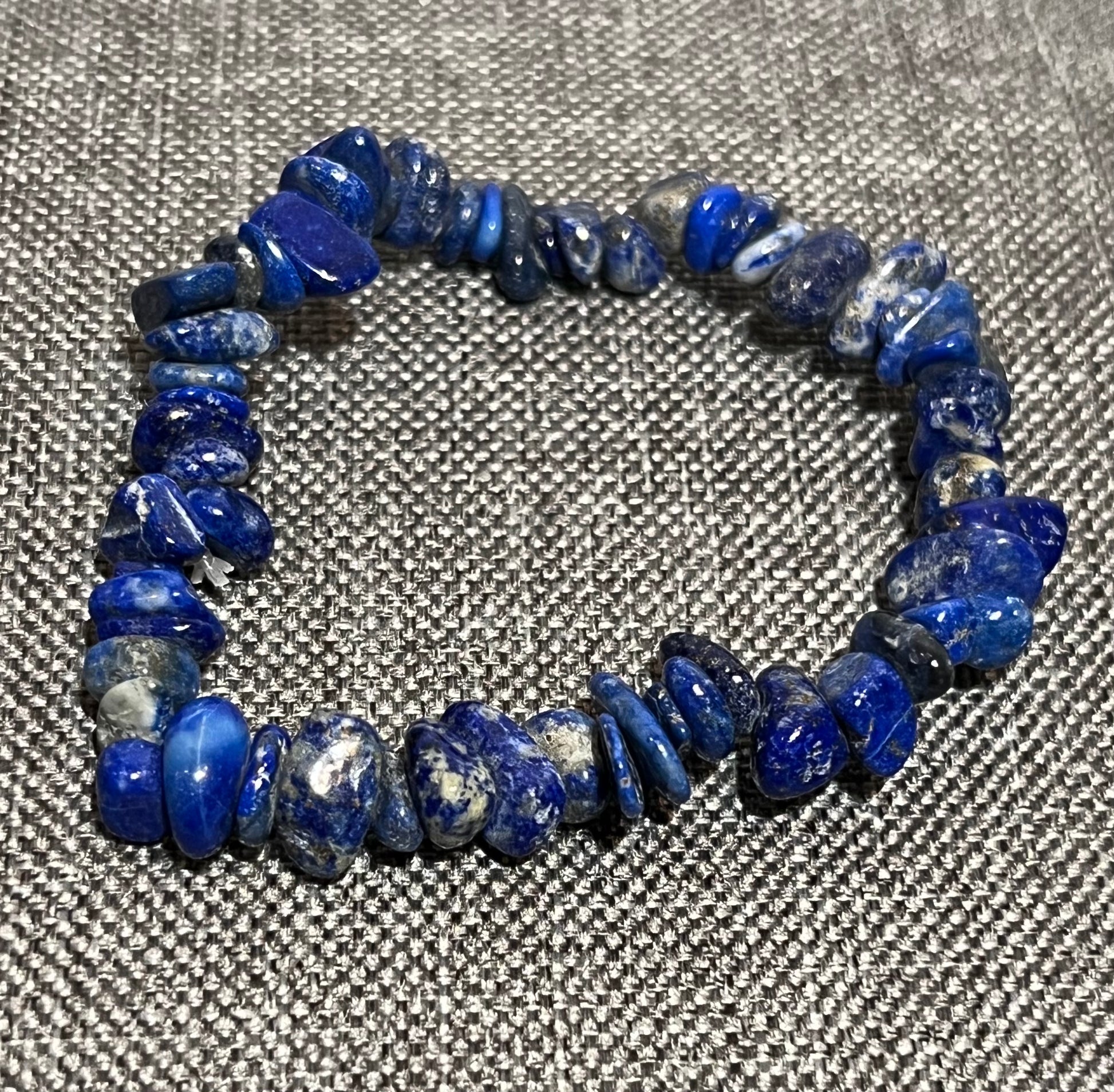 Chipped Natural Afghan Blue Lapis Gemstone Beaded Bracelet New. Size fits most. On elastic. Natural gemstones will have variations.