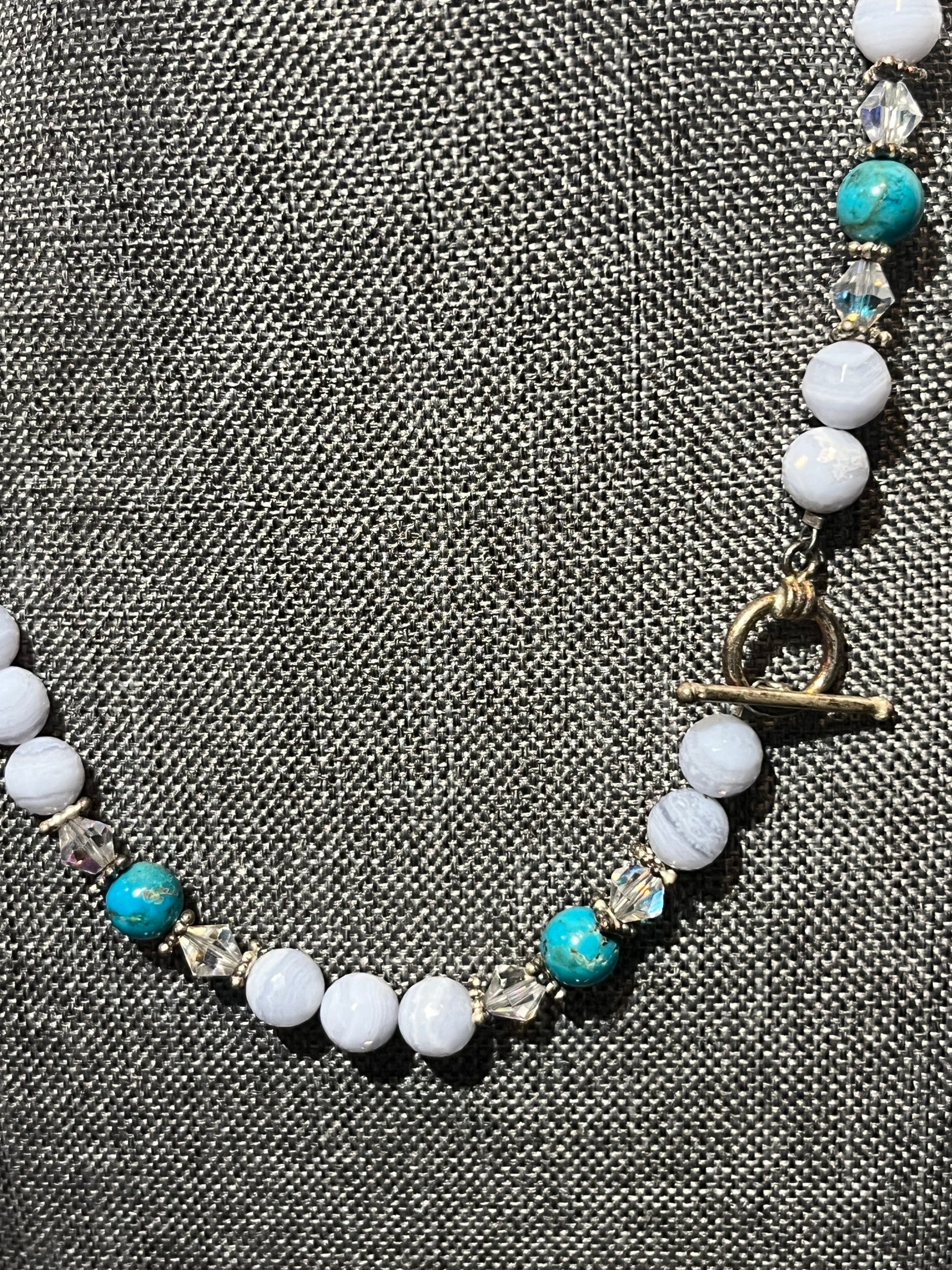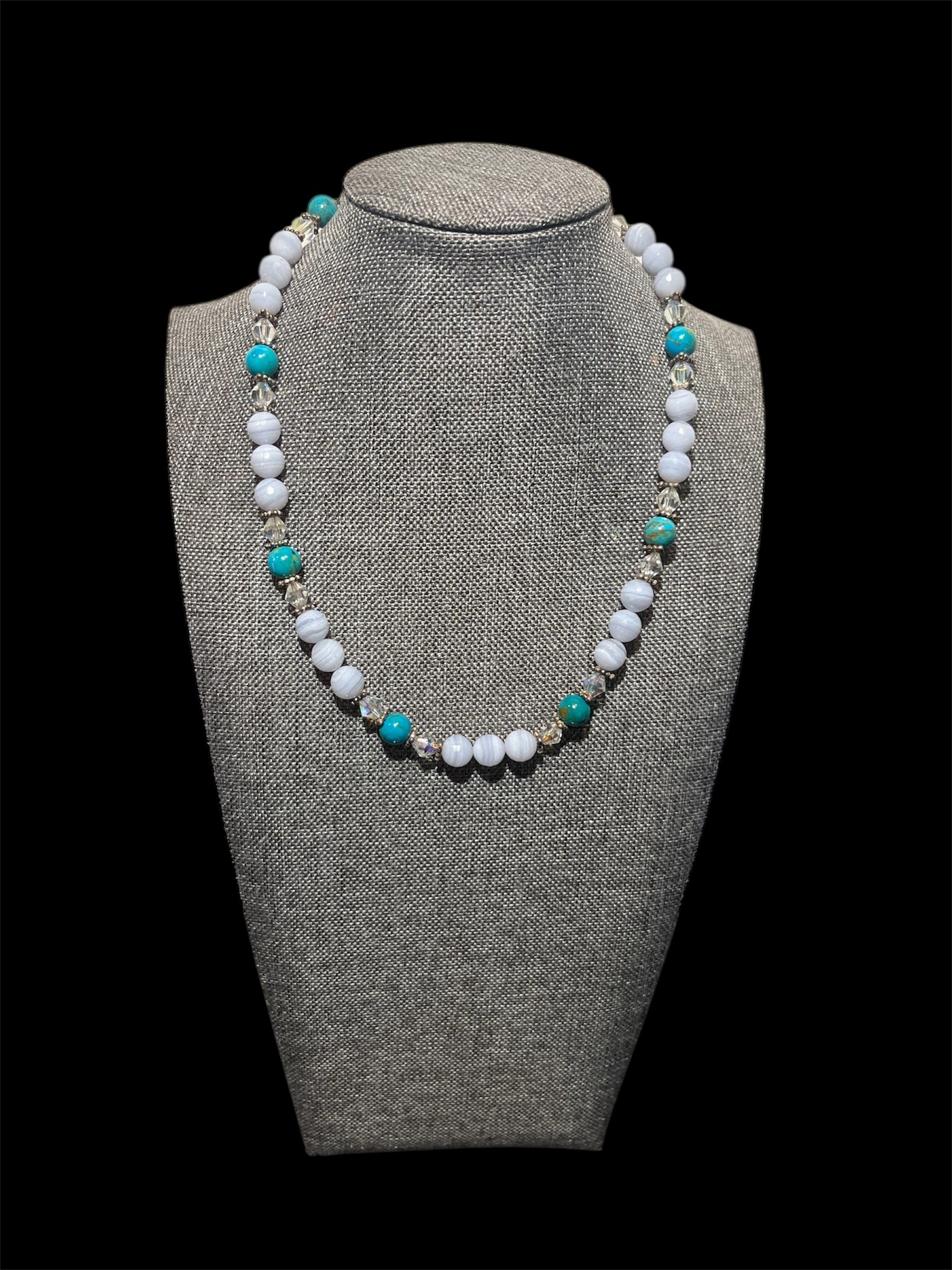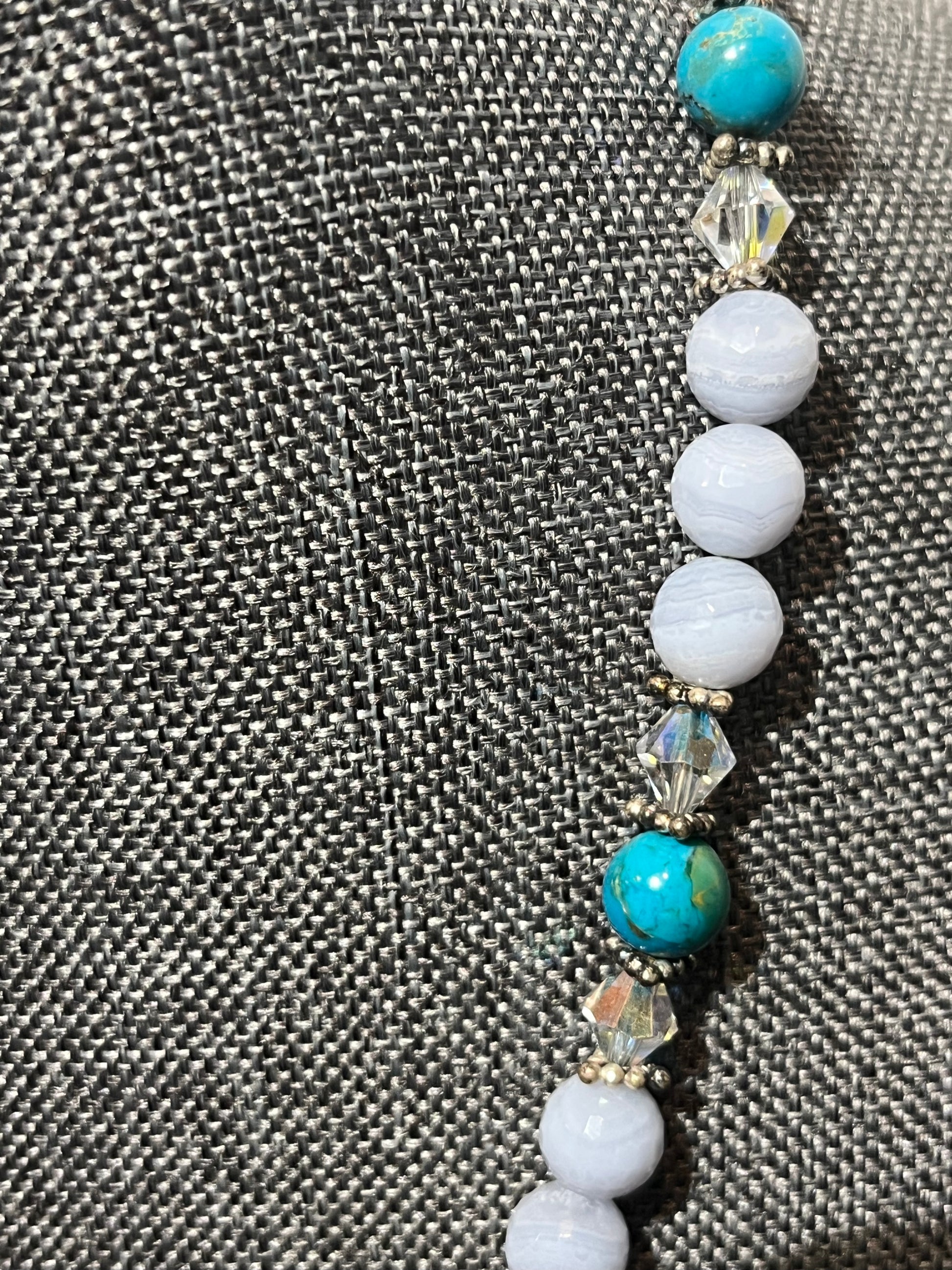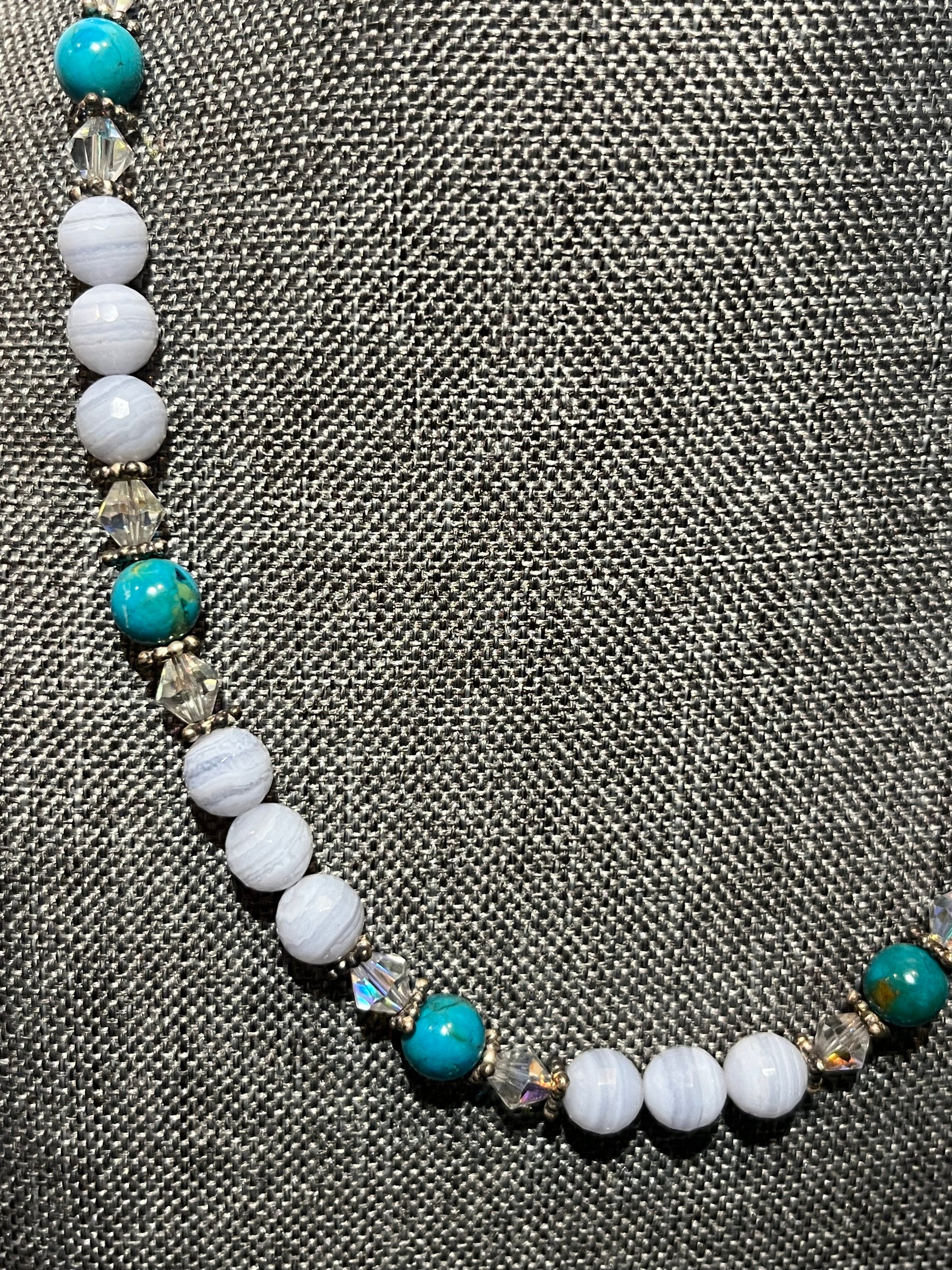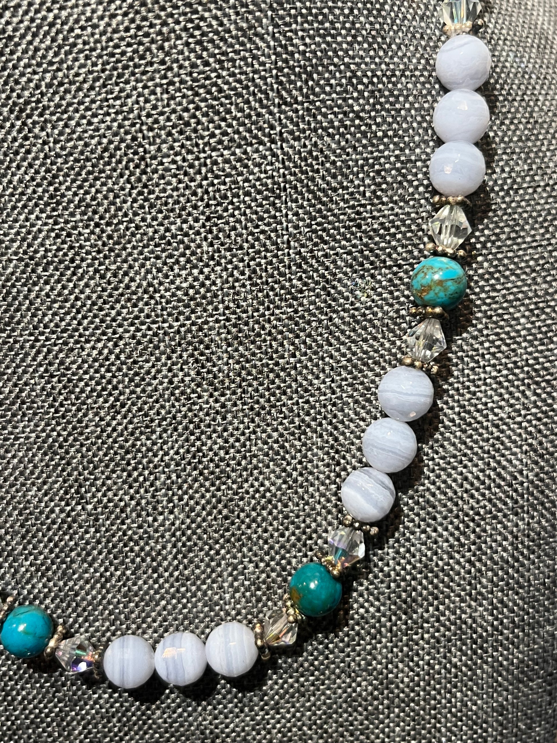 Blue Lace Agate Turquoise Made With Swarovski Crystals Sterling Silver Necklace