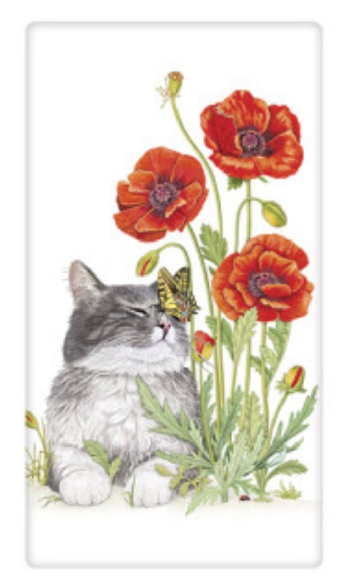Flour Sack Kitchen Dish Towel Poppy Cat Mary Lake - Thompson