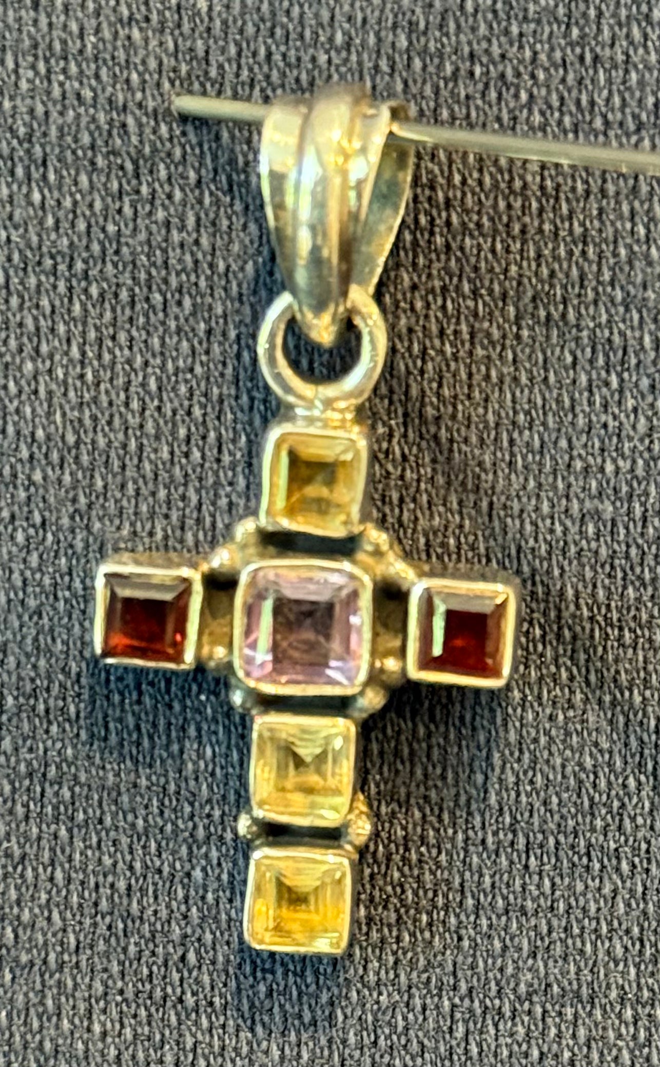 Garnet Amethyst And Citrine Sterling Silver Cross Pendant New. Natural gemstones will have variations.