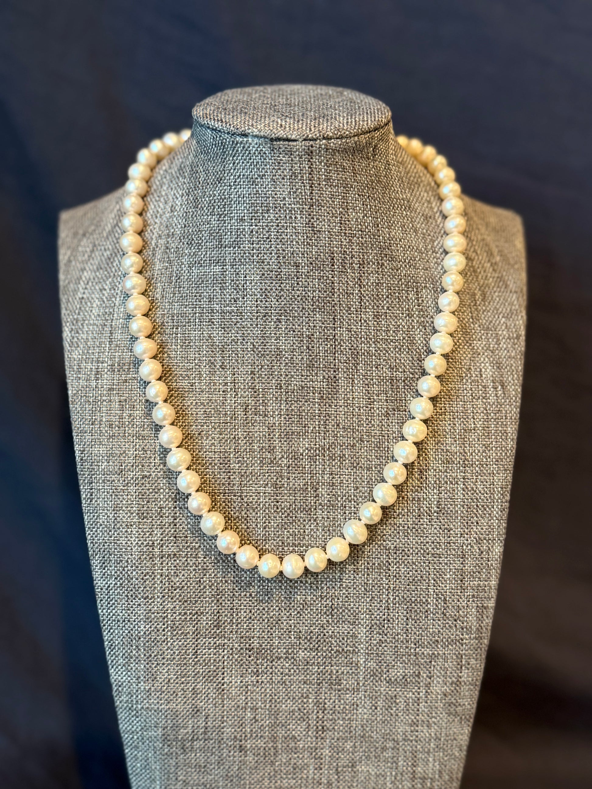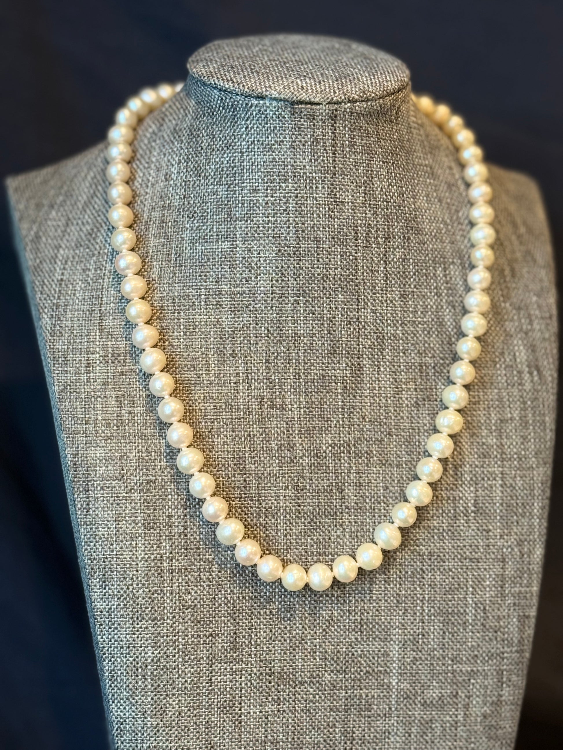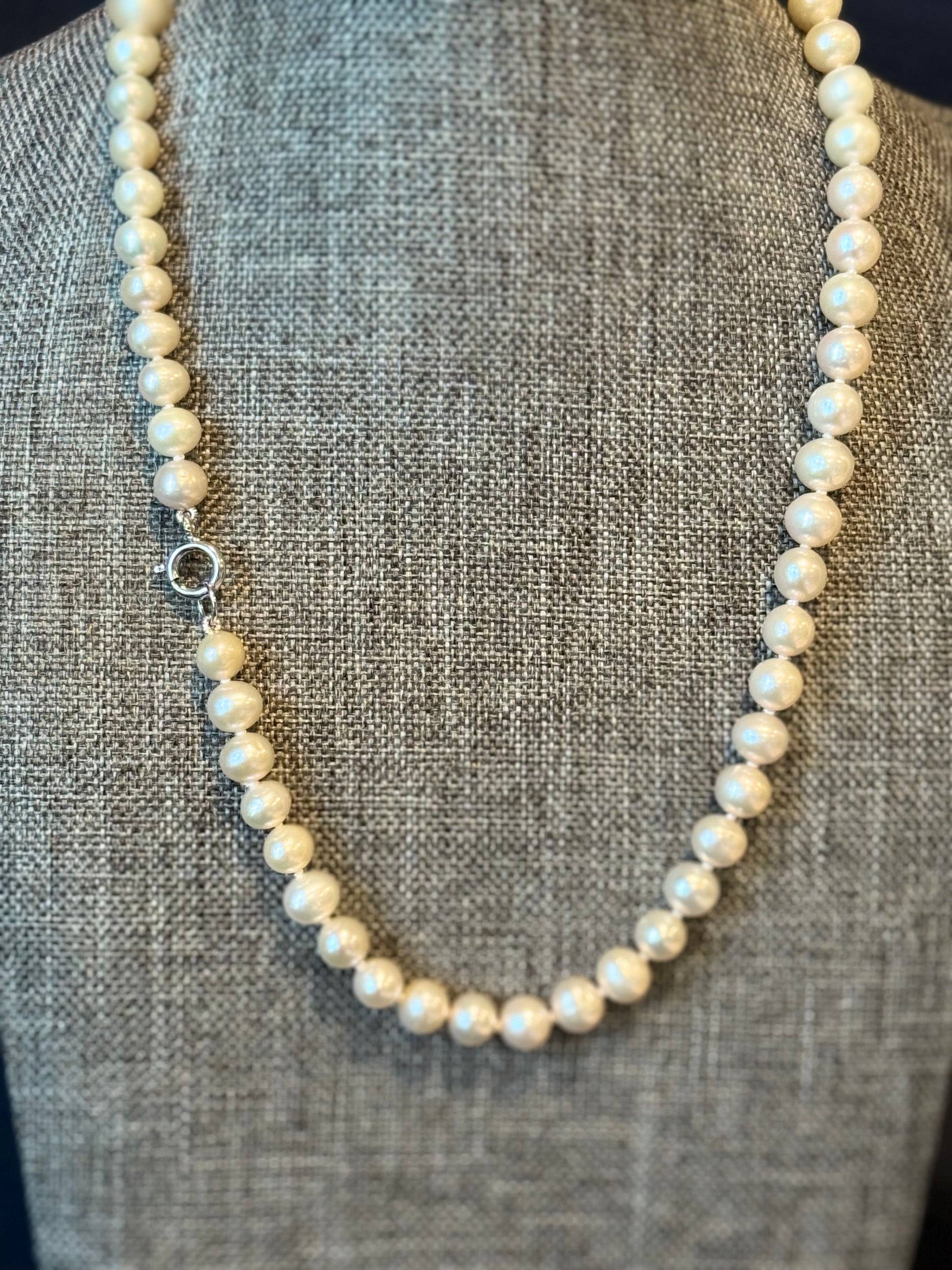 Hand Knotted Pearl Necklace With Sterling Silver Clasp 8-8.5mm