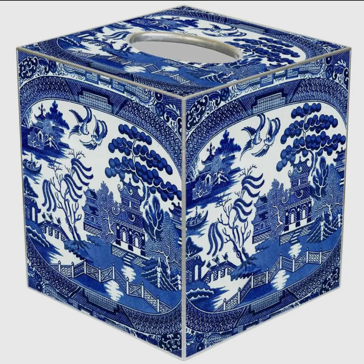 Papier Mache decoupage tissue box cover that is handmade in Houston, TX. They easily slide over any cubed tissue box. The artwork is hand-cut, decoupaged, and polished. Each tissue box cover is hand painted in gold or silver around the edges as the finishing touch.