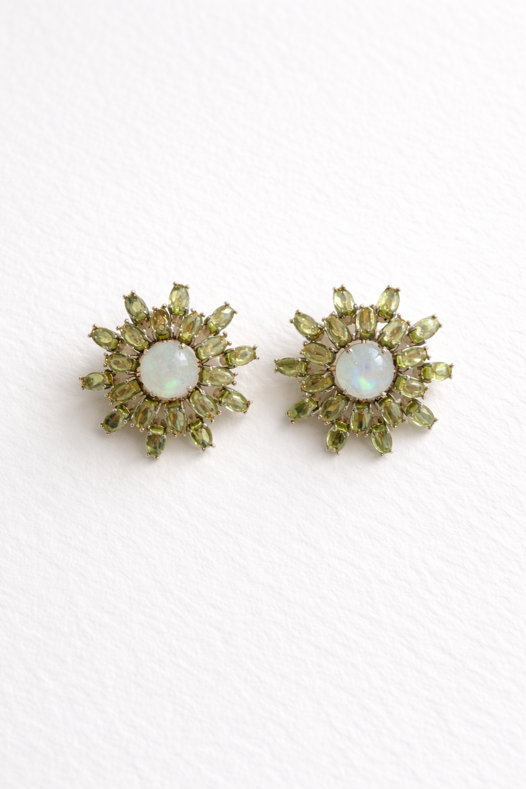 Sterling Silver Peridot and Sri Lankan Moonstone Earrings