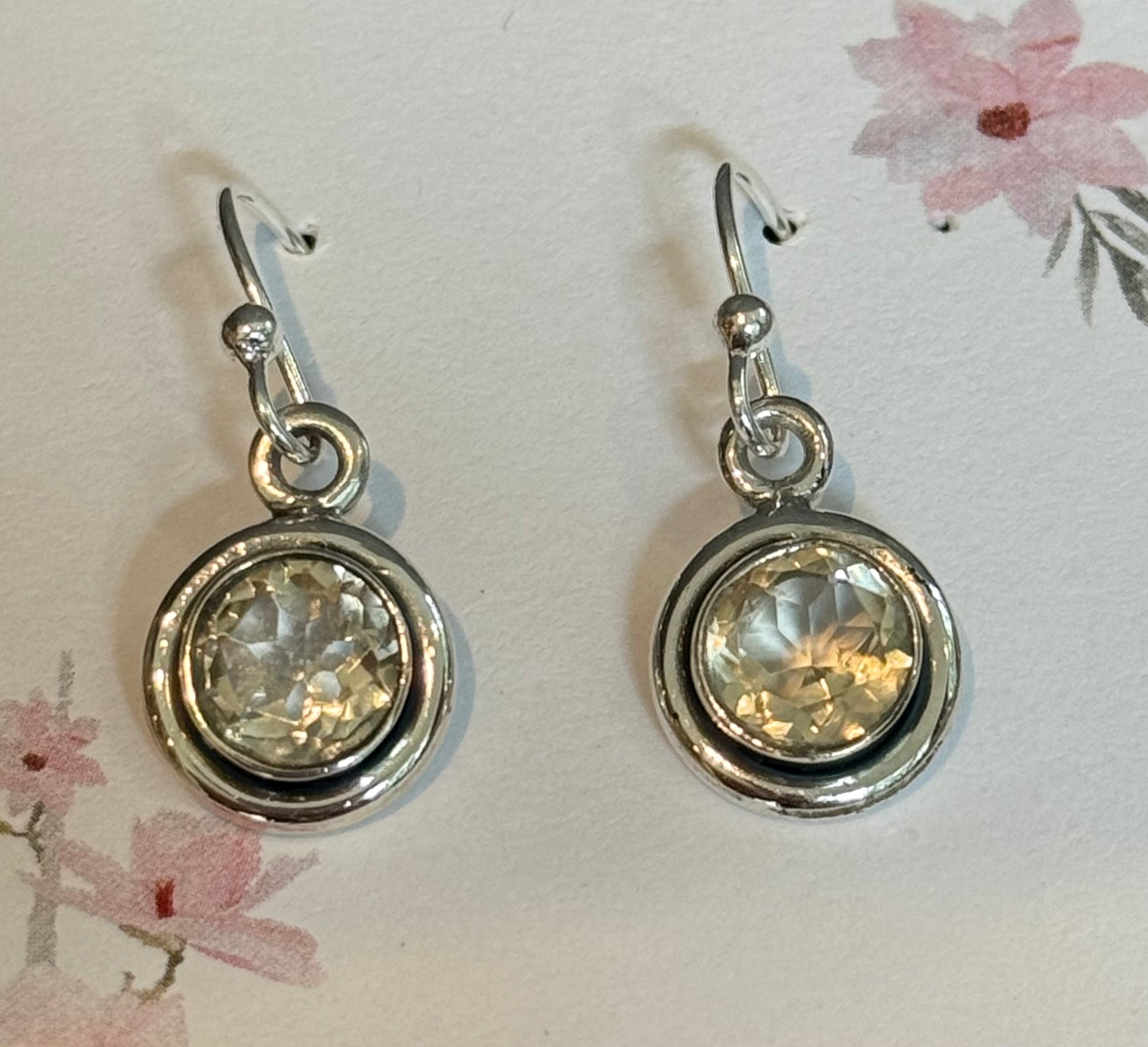 Sterling Silver Pale Citrine Dangle Earrings New. Natural gemstones will have variations.