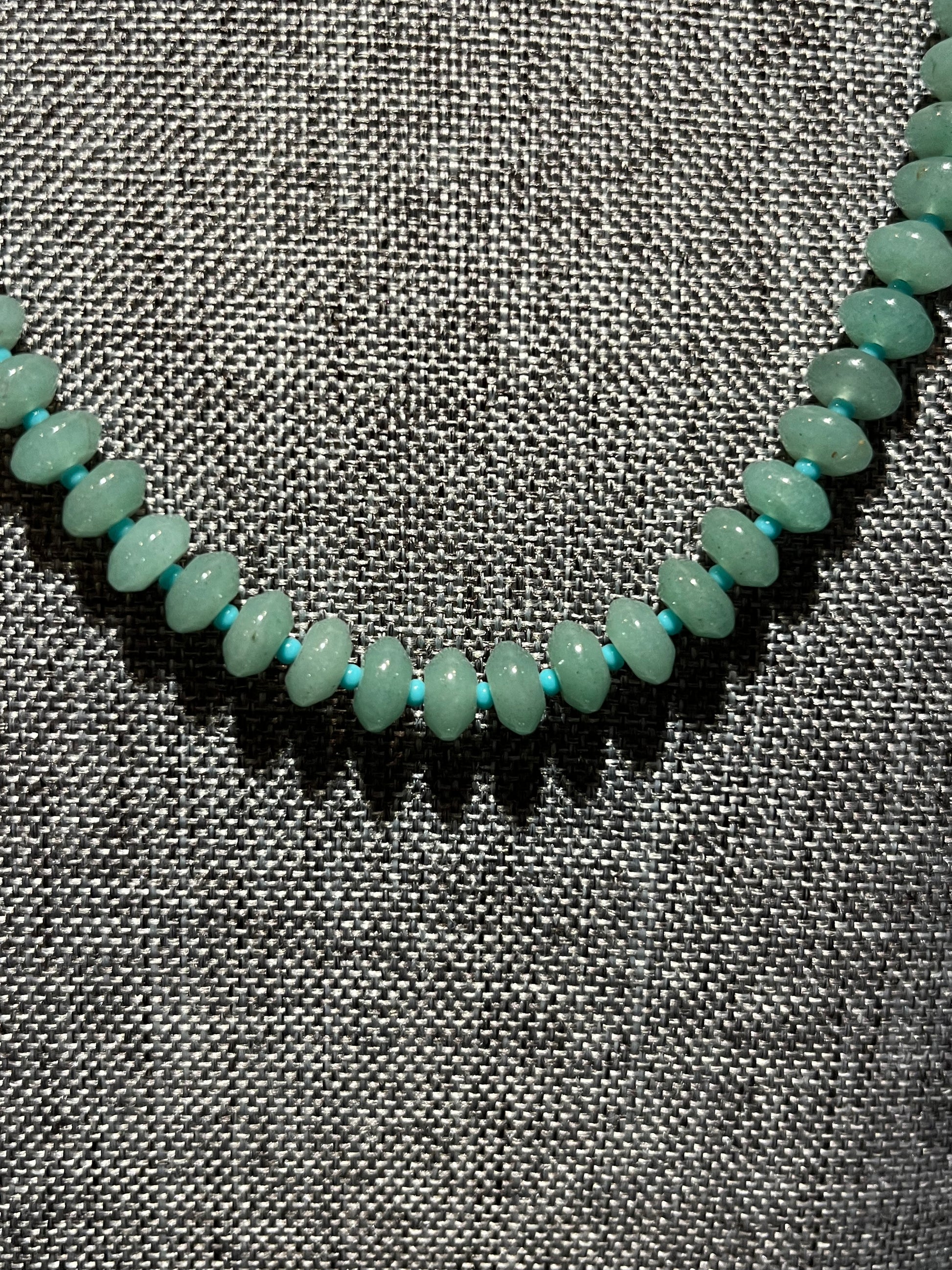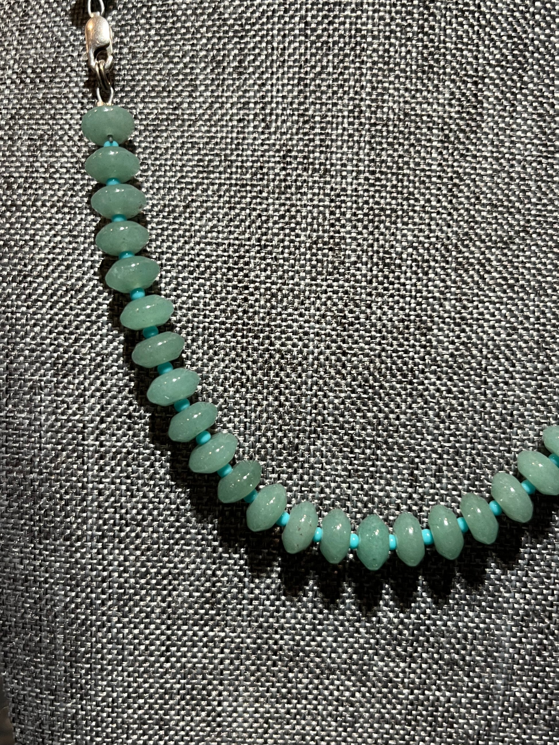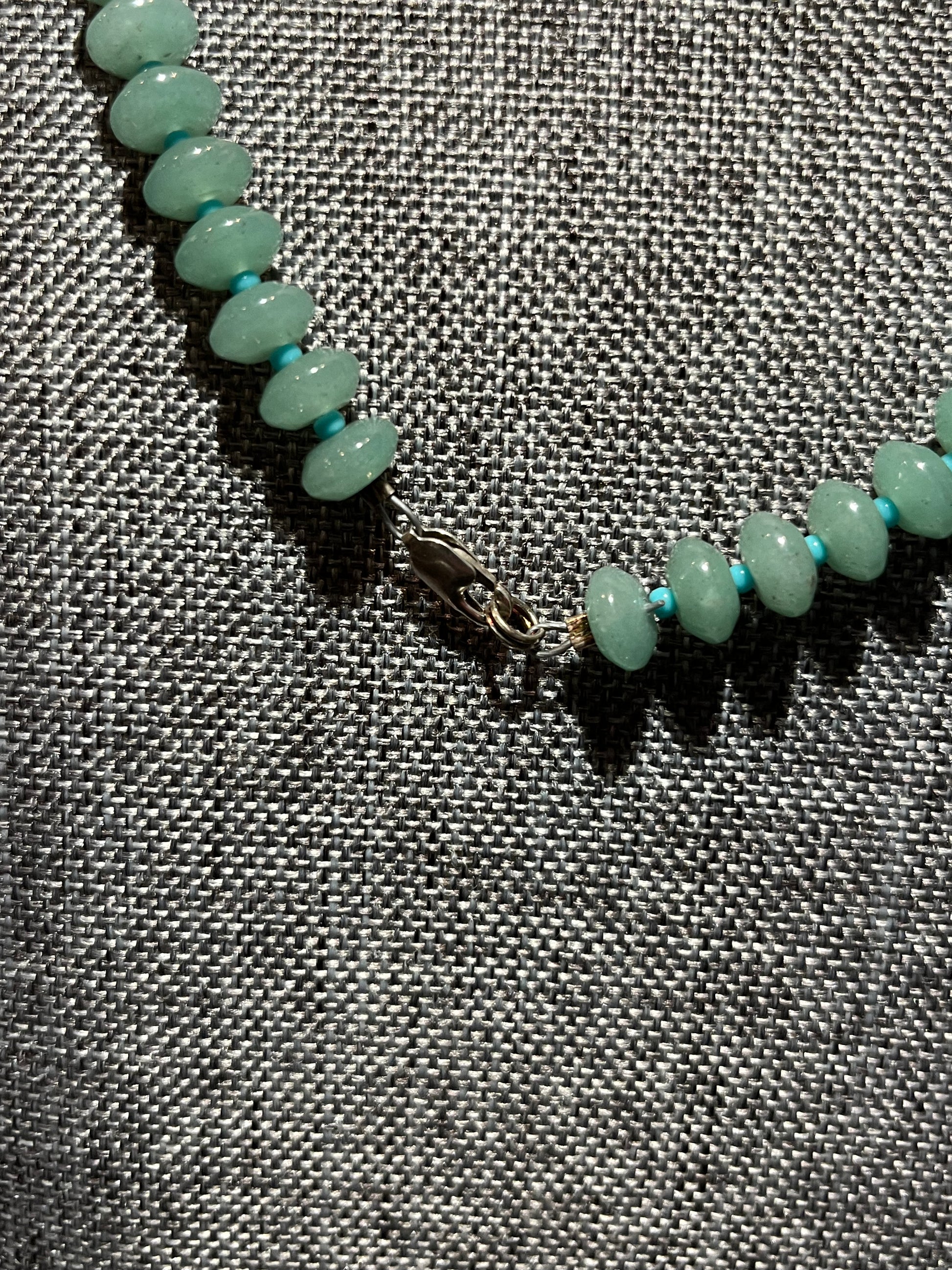 Sterling Silver Green Aventurine Necklace New. Measures approximately 16". Natural gemstones will have variations.