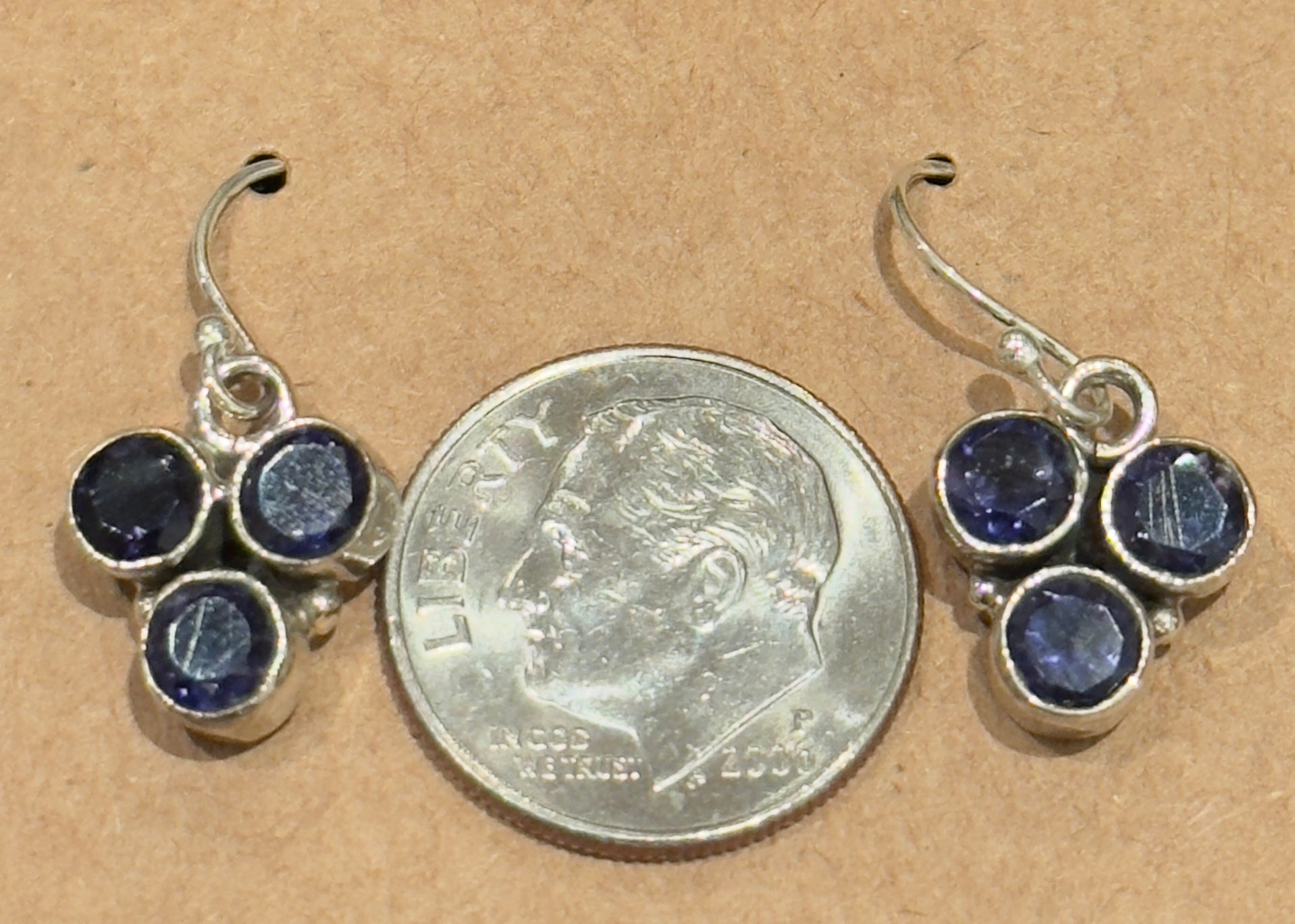 Sterling Silver Iolite Dangle Earrings New. Natural gemstones will have variations.