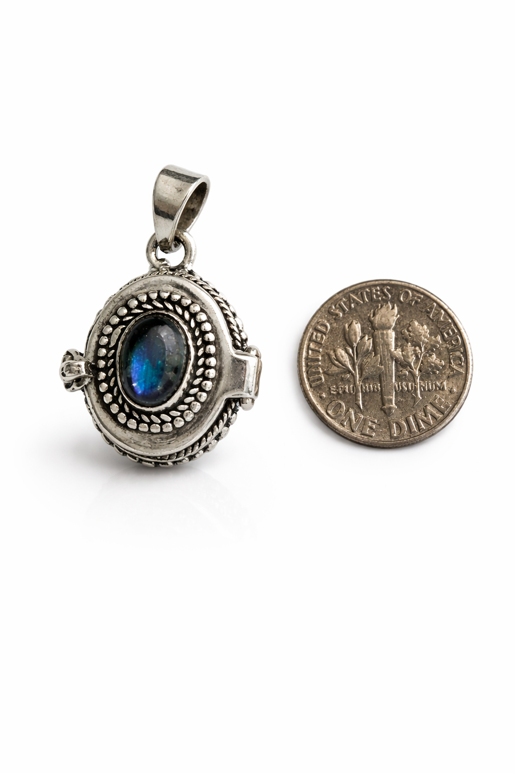 Sterling Silver Labradorite Poison Pendant Large New. Natural gemstones will have variations.