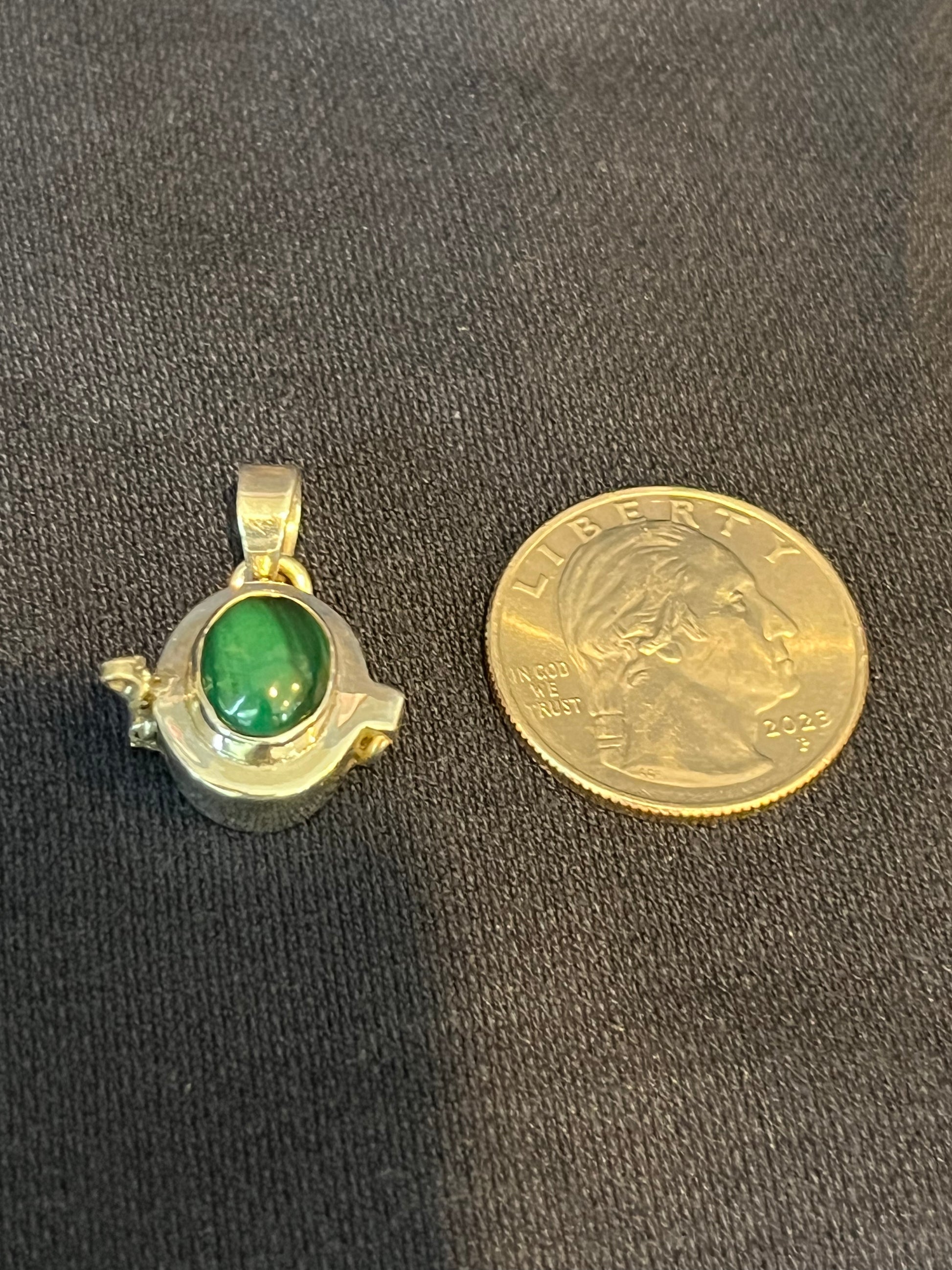Sterling Silver Malachite Poison Pendant New. Natural gemstones will have variations.