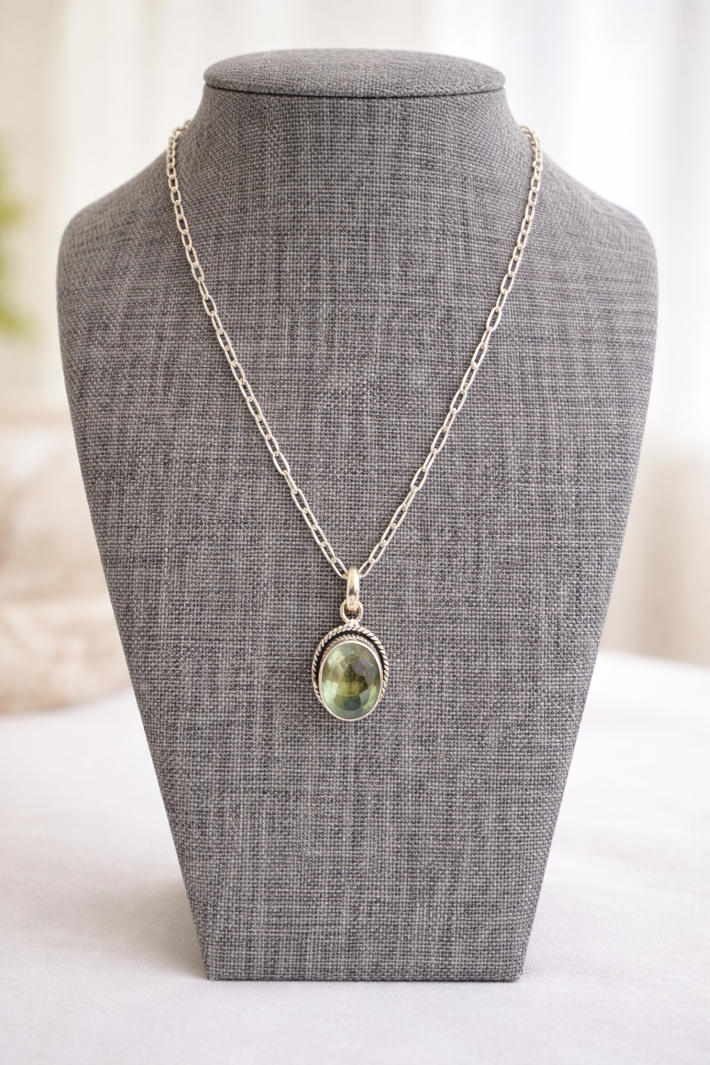 Sterling Silver Green Amethyst Pendant Necklace with 16" Paper Clip Chain