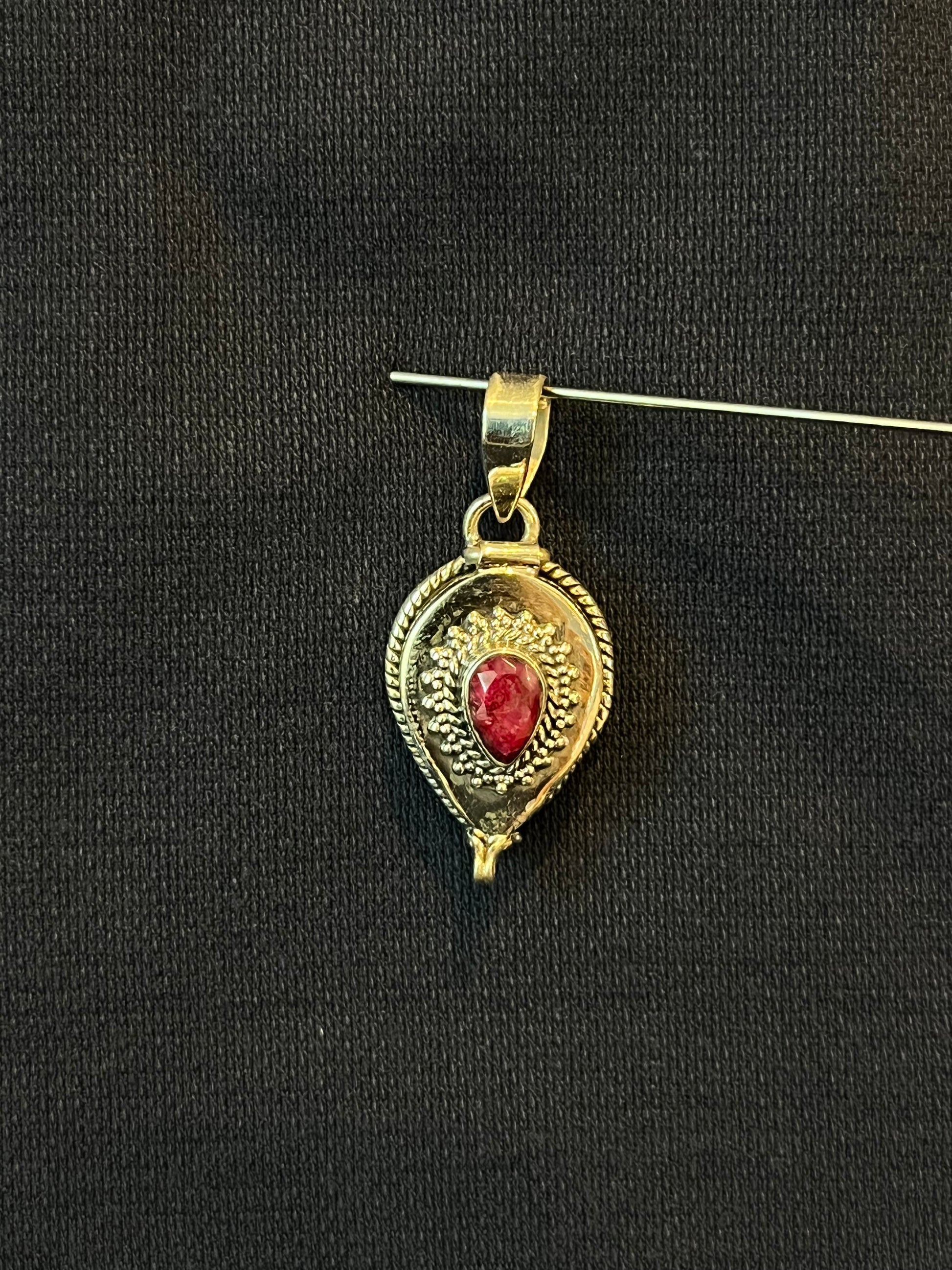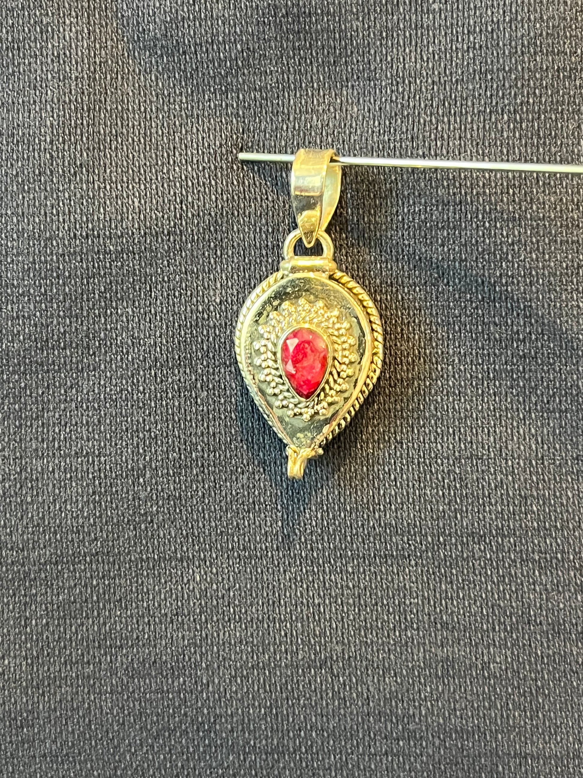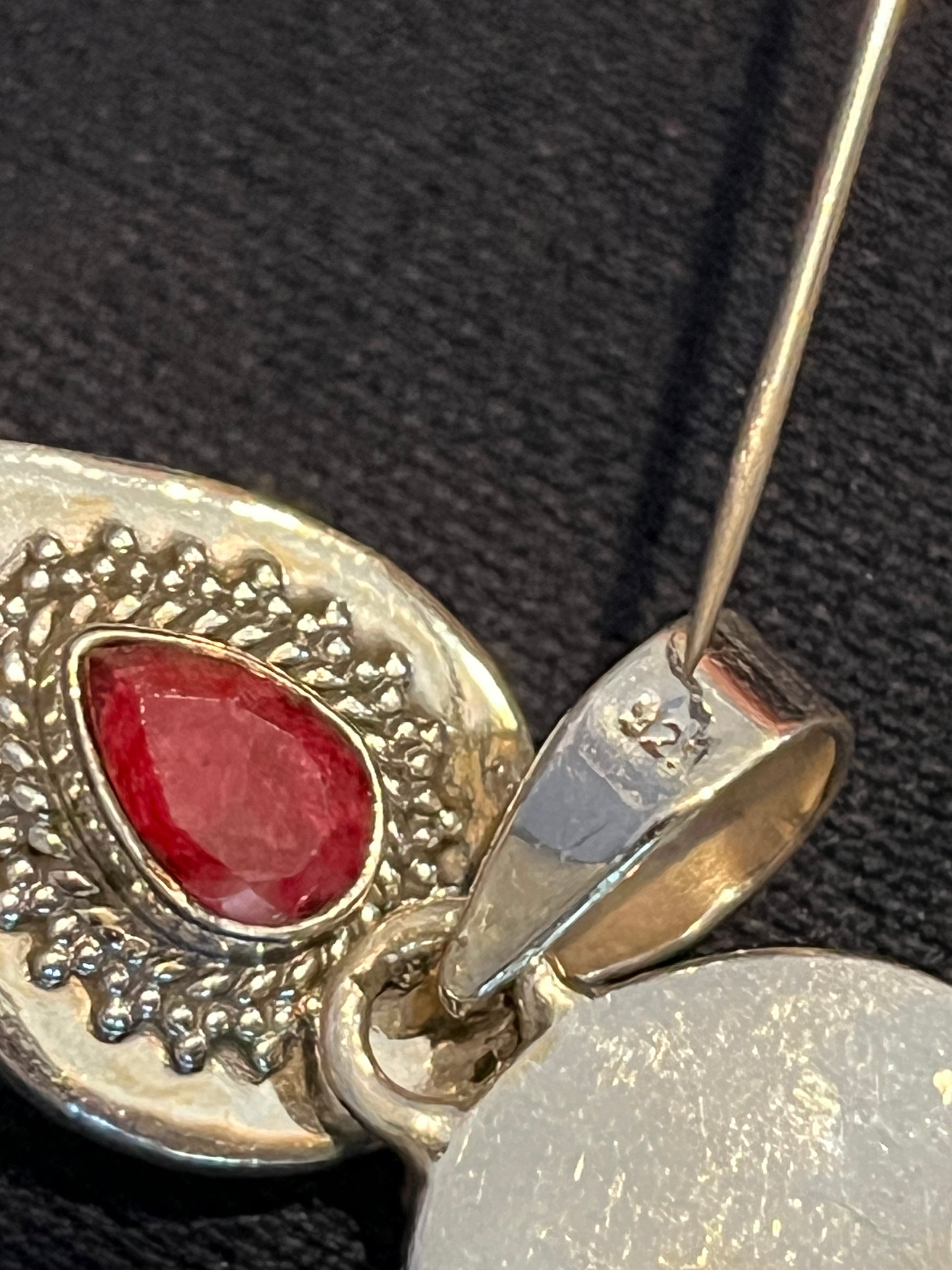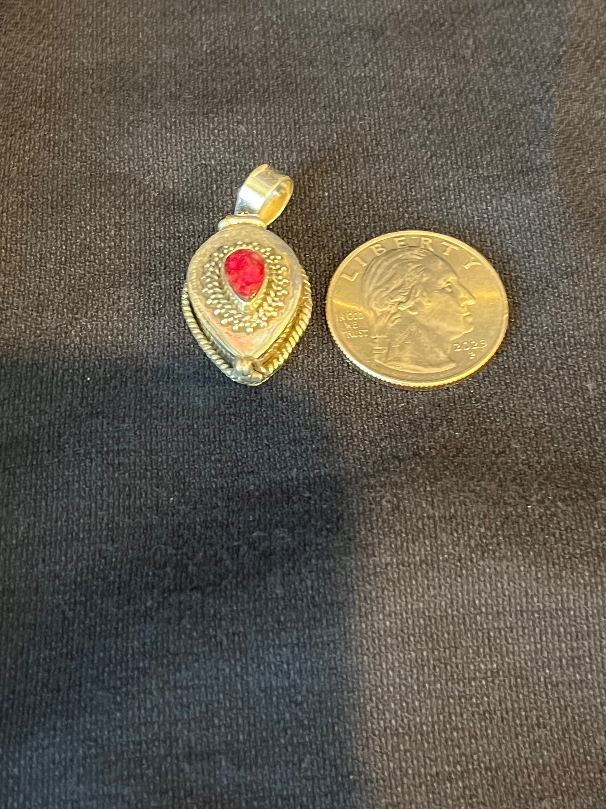 Sterling Silver Ruby Poison Pendant New. Natural gemstones will have variations.