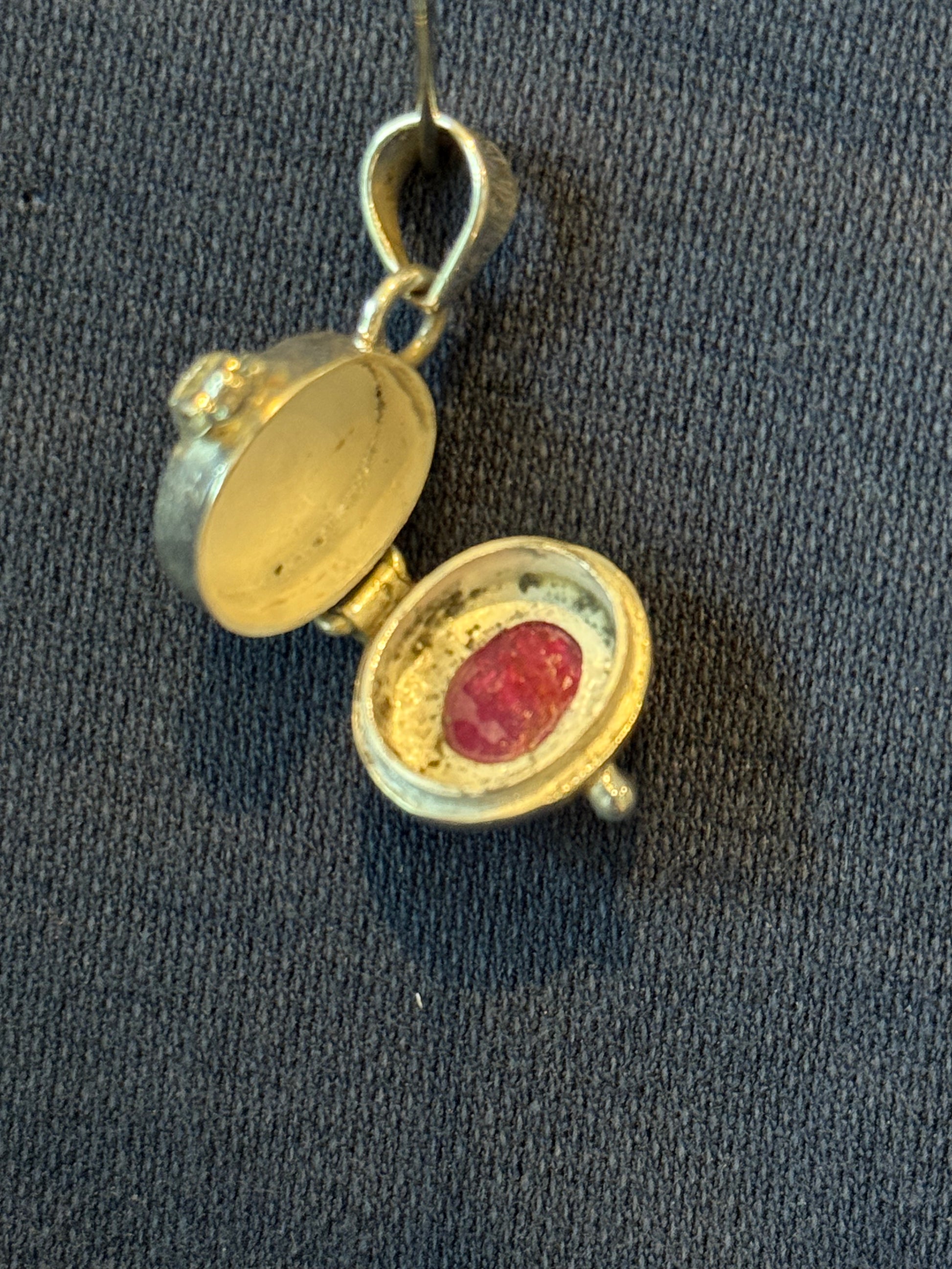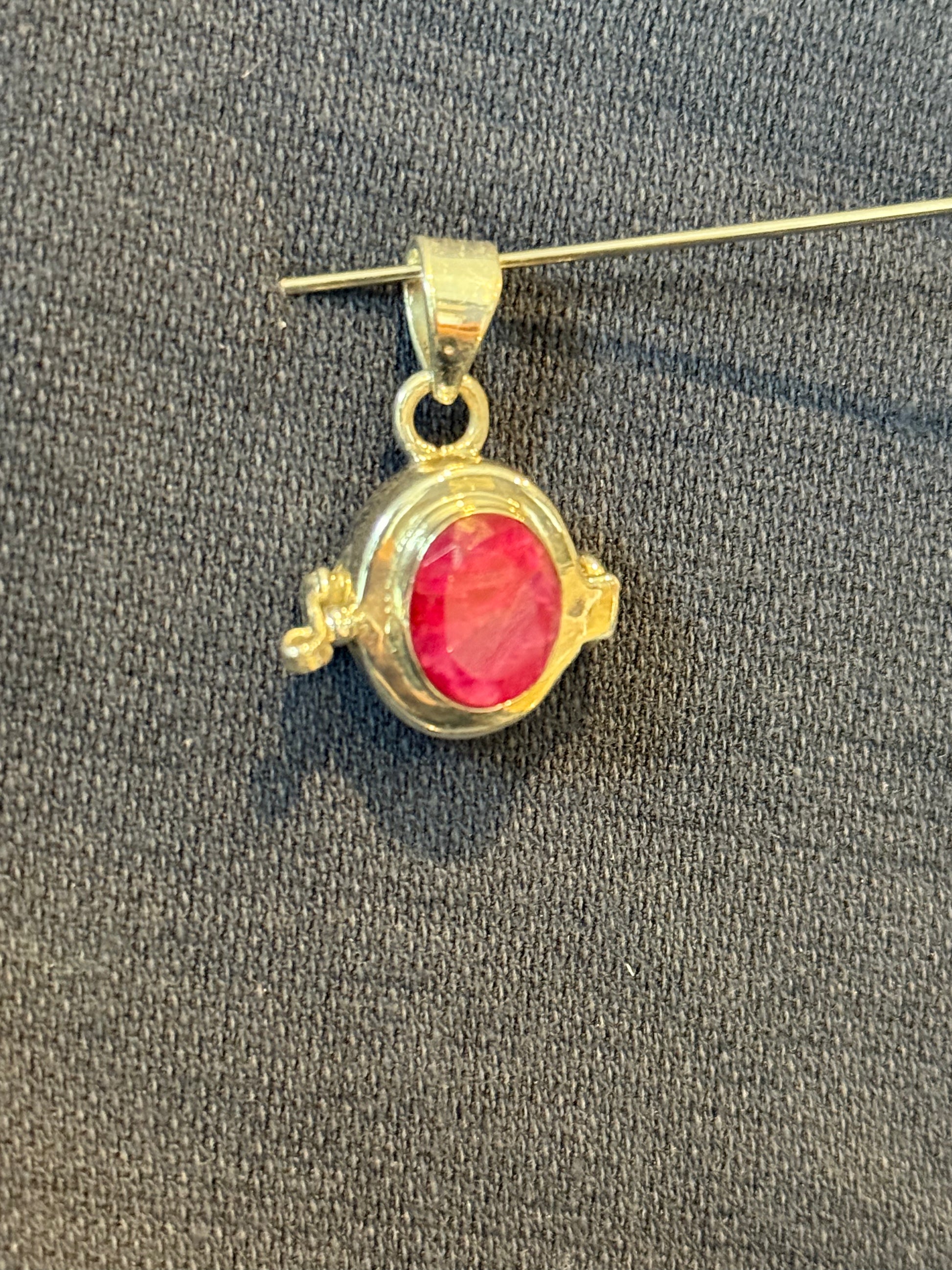 Sterling Silver Ruby Poison Pendant New. Natural gemstones will have variations.