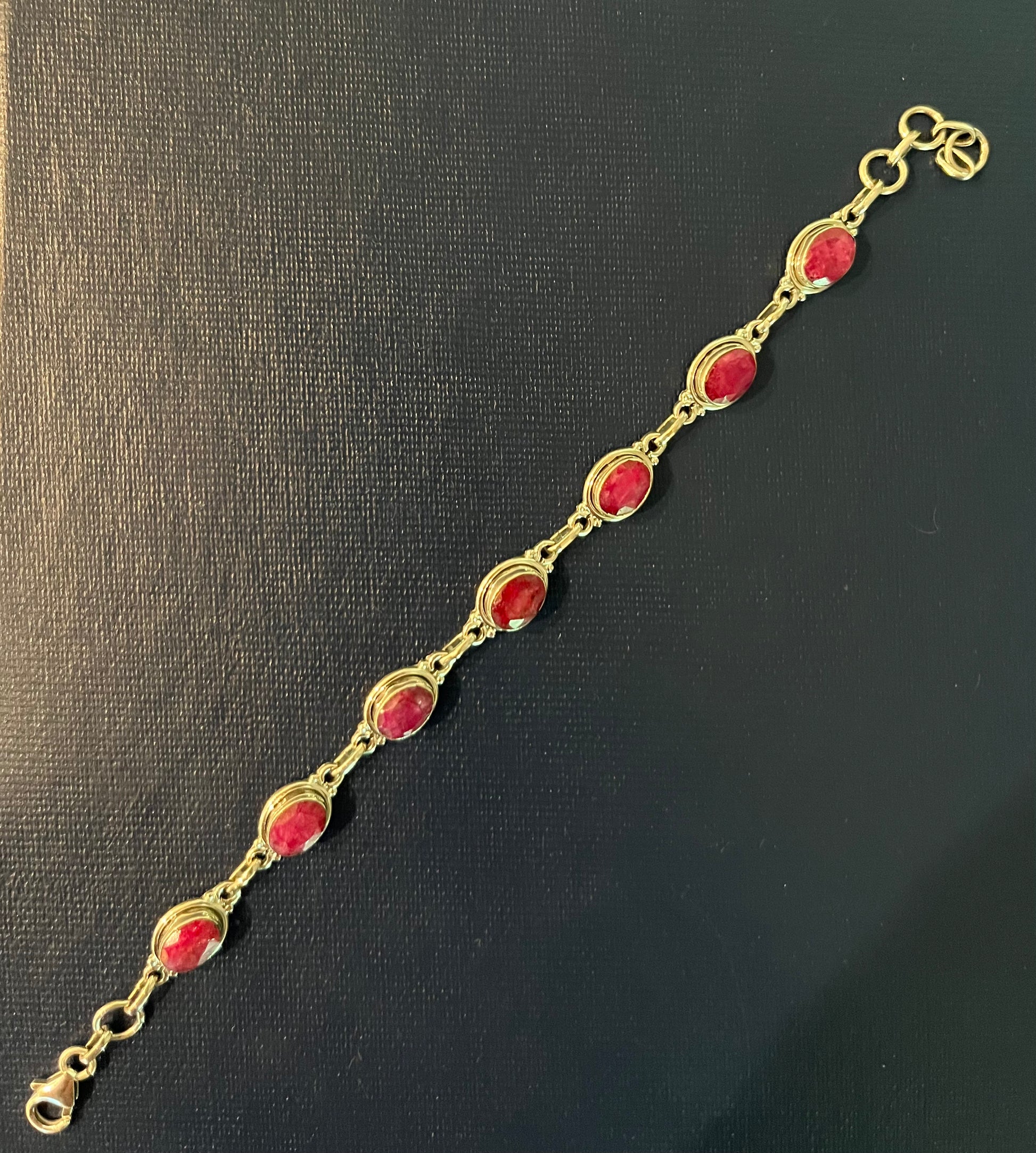 Sterling Silver Tennis Bracelet With Natural Ruby Adjustable
