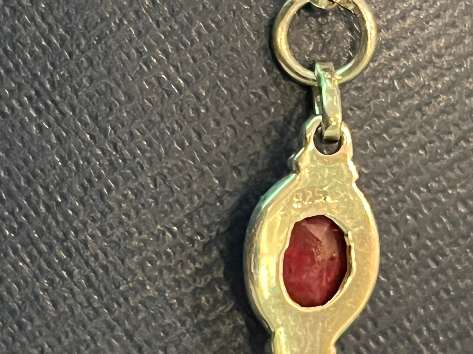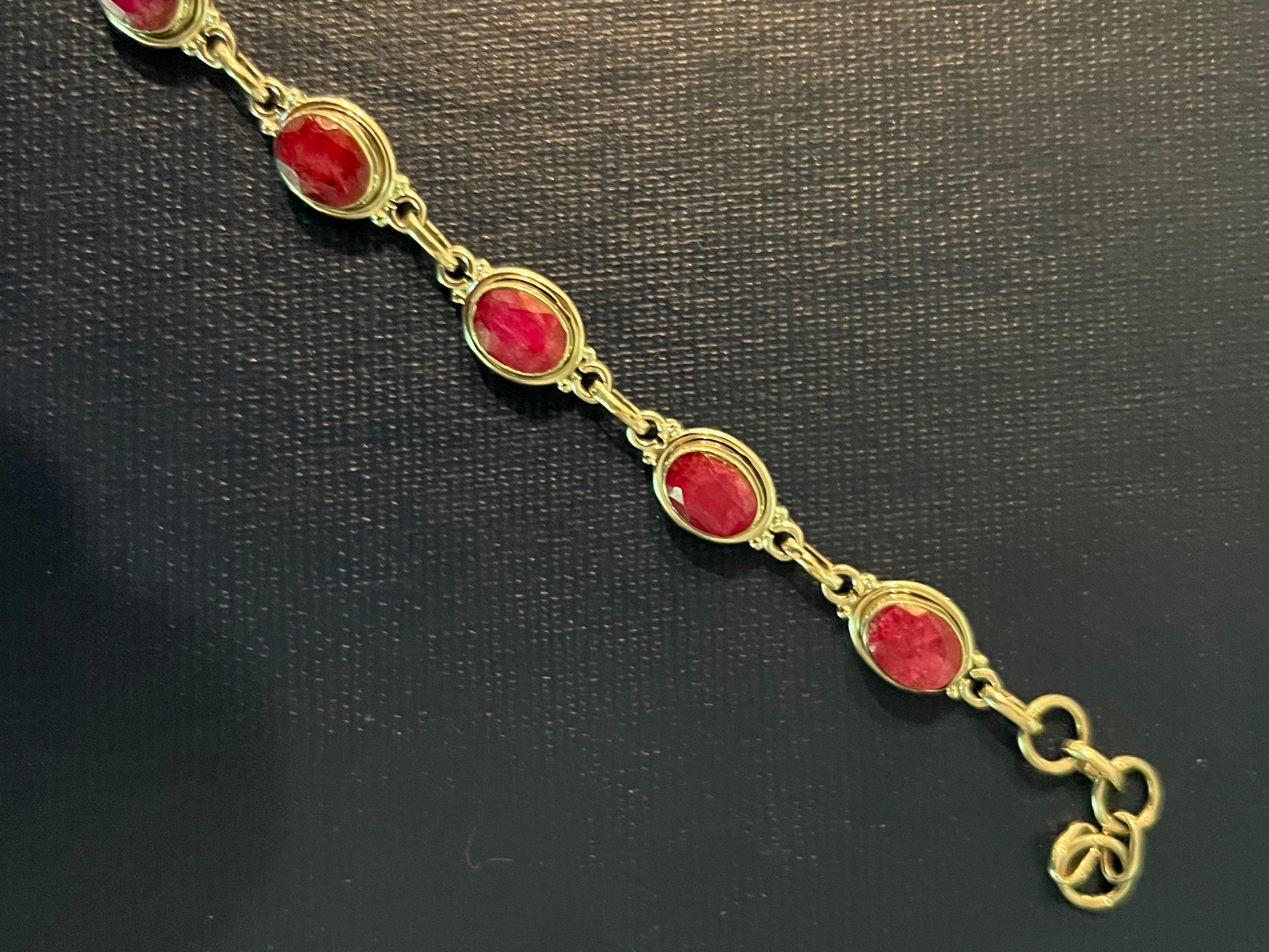 Sterling Silver Tennis Bracelet With Natural Ruby Adjustable. Natural gemstones will have variations. Approximately 7.5" in length.