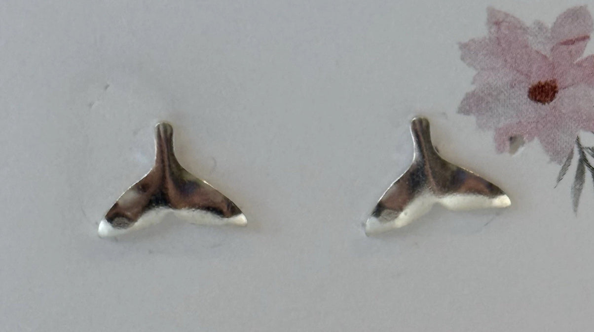 Sterling Silver Whale Tail Stud Earrings New.