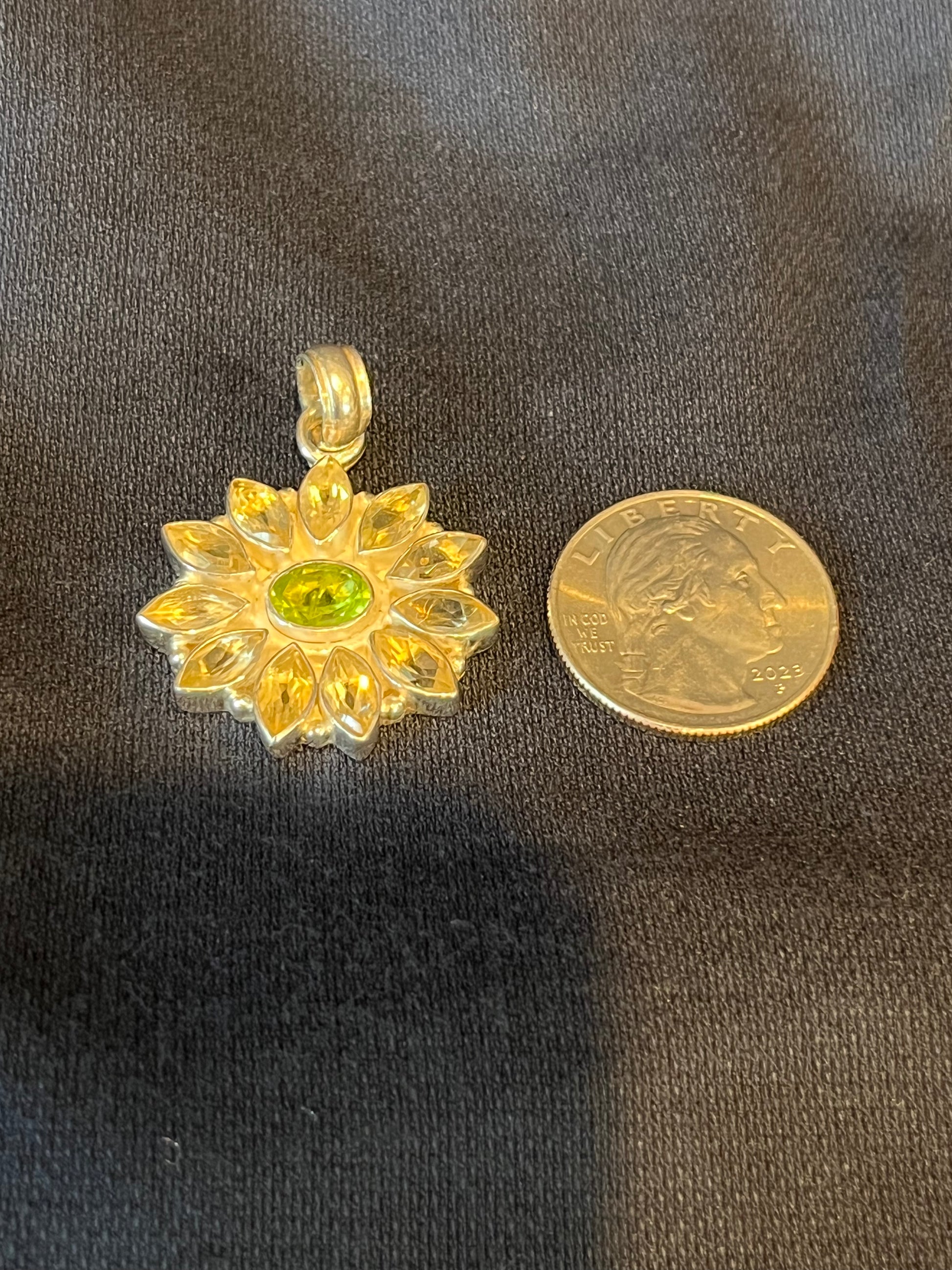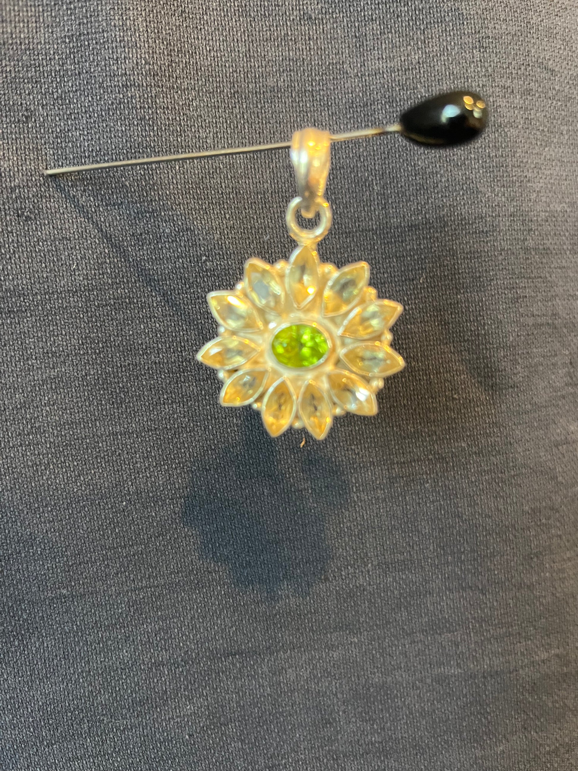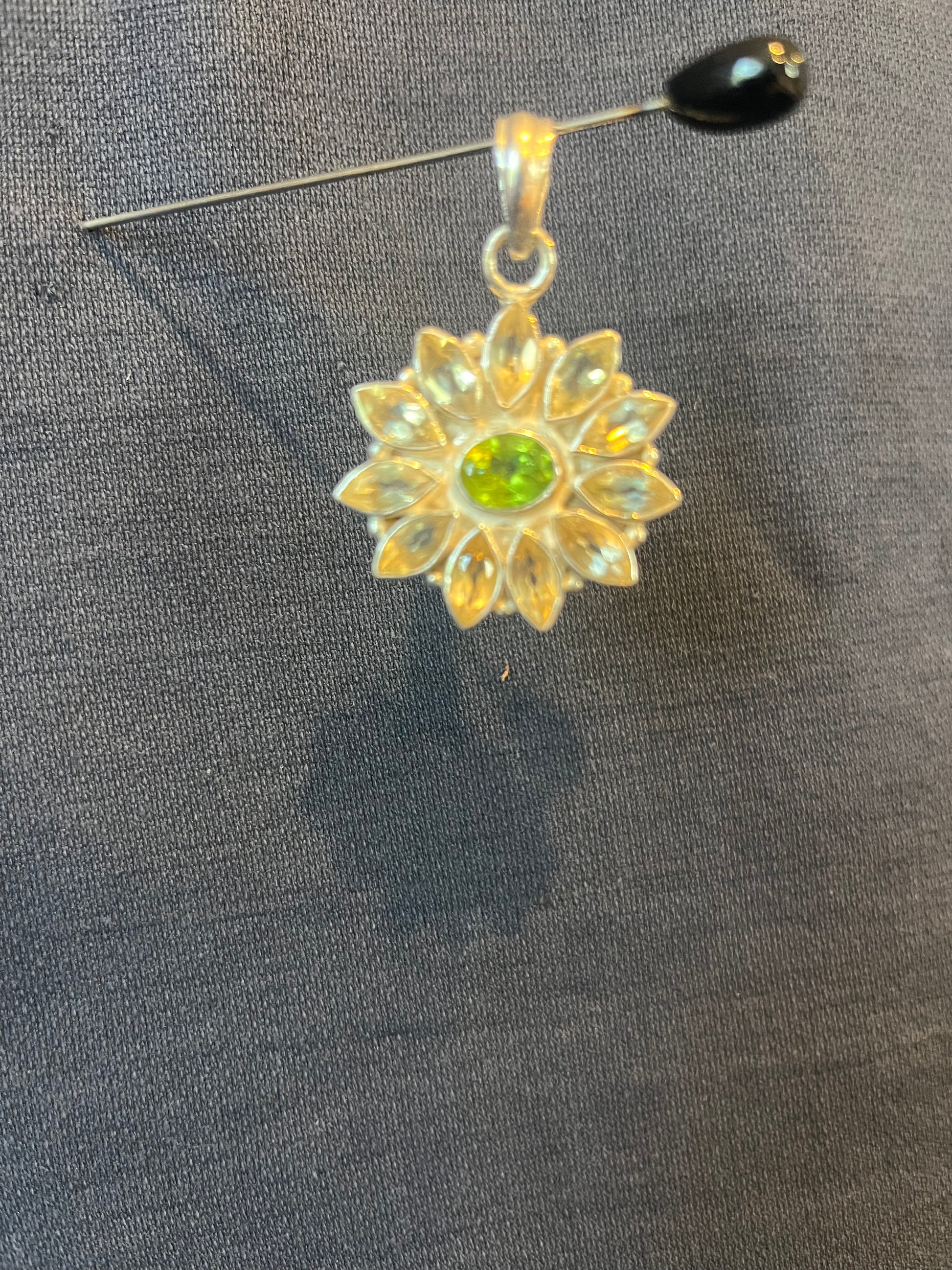Sterling Silver Peridot And Citrine Flower Pendant New. Natural gemstones will have variations.