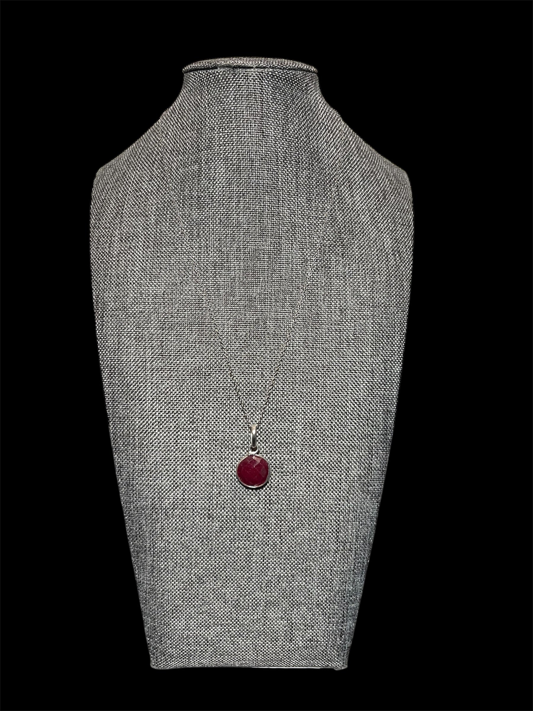 Sterling Silver Ruby Pendant Necklace New. Natural gemstones will have variations.